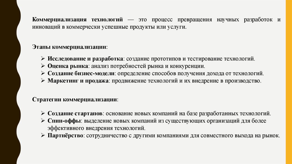 4. Коммерциализация:Внедрение ИС в бизнес-процессы, например, через создание новых продуктов или