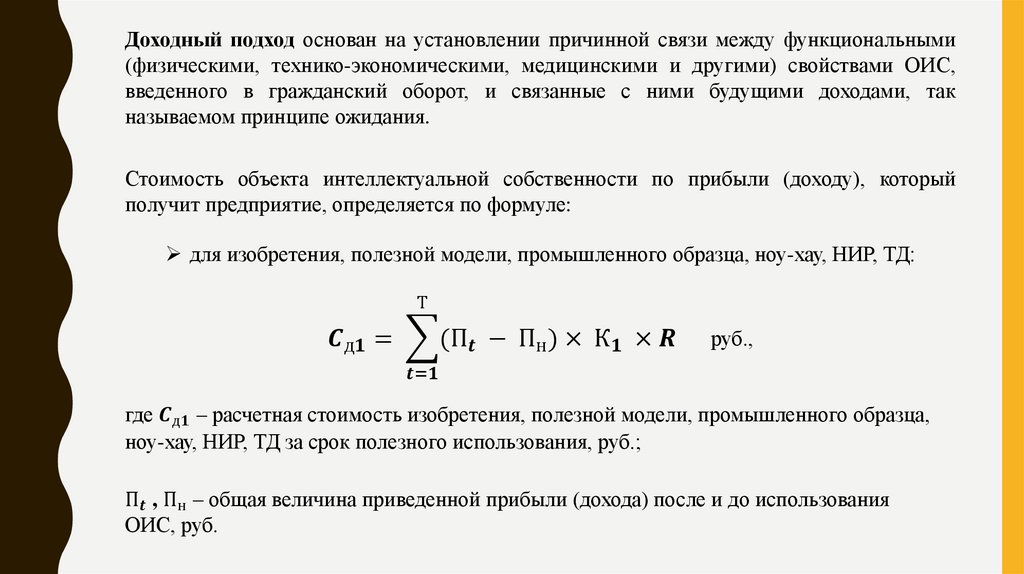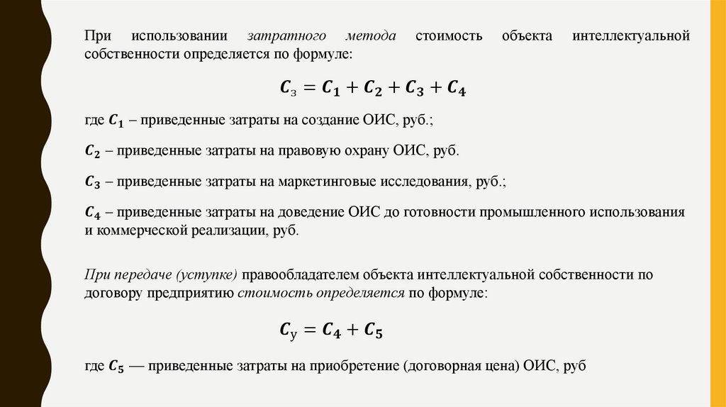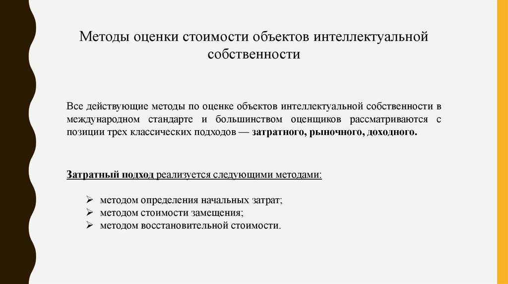 Методы оценки стоимости объектов интеллектуальнойсобственности
