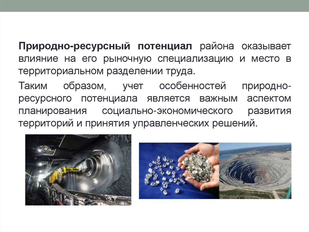 Природно-ресурсный потенциал района оказываетвлияние на его рыночную специализацию и место в