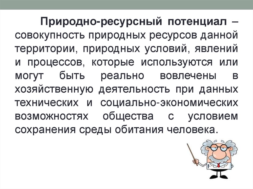 Природно-ресурсный потенциал –совокупность природных ресурсов данной