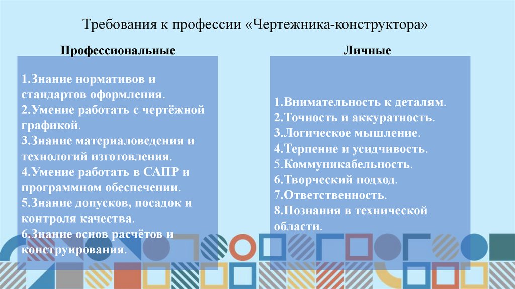 Требования к профессии «Чертежника-конструктора»Профессиональные