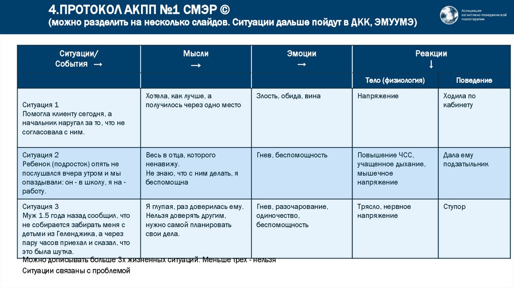 24. 8. ПРОТОКОЛ АКПП №2 СВОДНАЯ ТАБЛИЦА ЭМУУМЭ © 3 – 4 ситуации из СМЭР или концептуализации