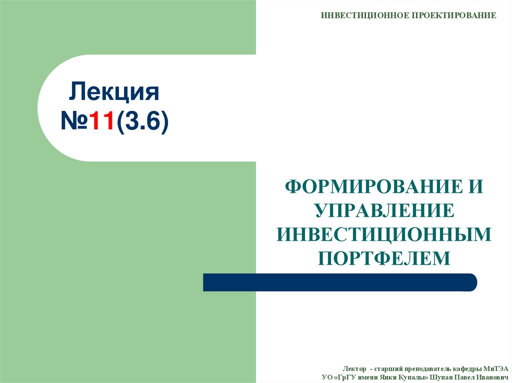 Лекция 11. Формирование и управление инвестиционным портфелем (1)