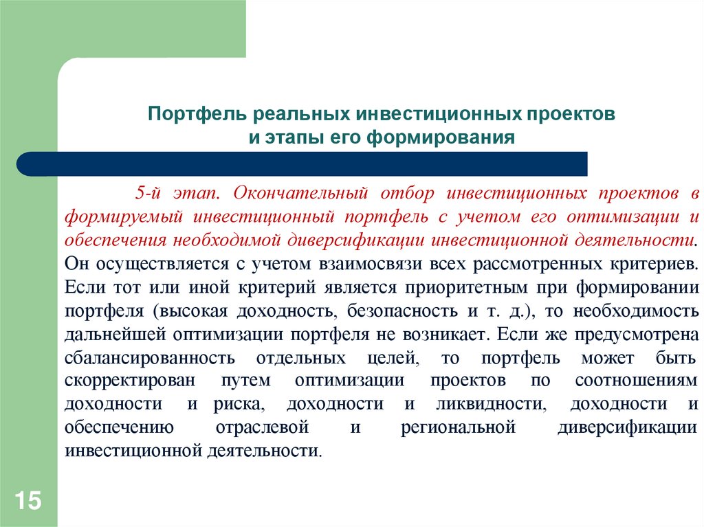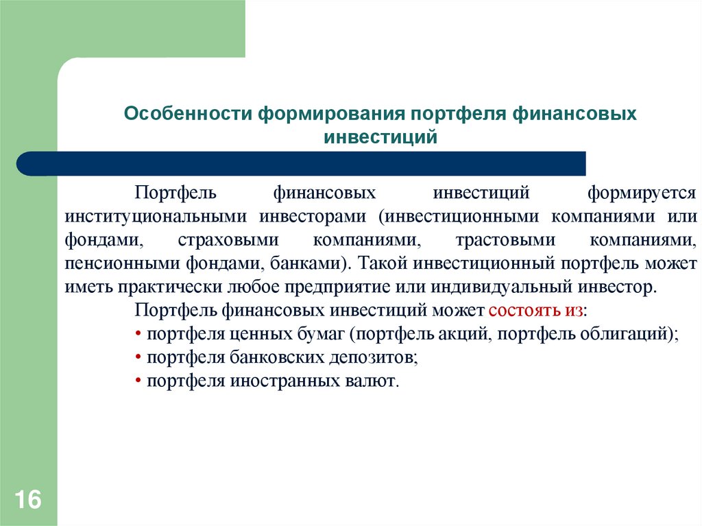 портфеля является формой реализации инвестиционной стратегии фирмы