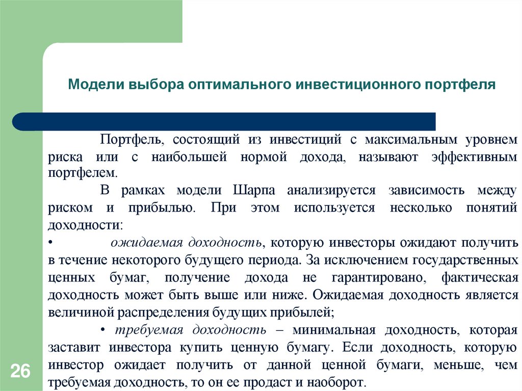 перспективу показателями ожидаемого дохода и риска. Изменения