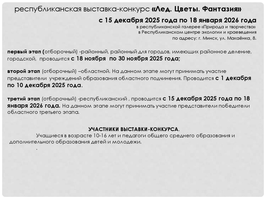 республиканская выставка-конкурс «Лед. Цветы. Фантазия»с 15 декабря 2025 года по 18 января 2026 года