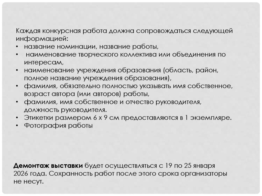 конкурсная работа должна иметь этикетку с нижней