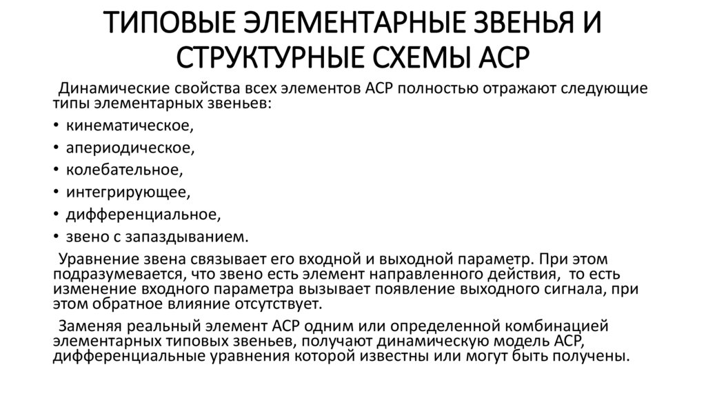ТИПОВЫЕ ЭЛЕМЕНТАРНЫЕ ЗВЕНЬЯ ИСТРУКТУРНЫЕ СХЕМЫ АСР