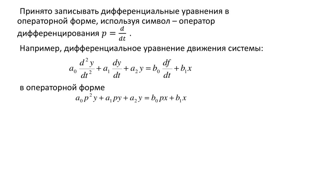 Принято записывать дифференциальные уравнения воператорной форме, используя символ – оператор