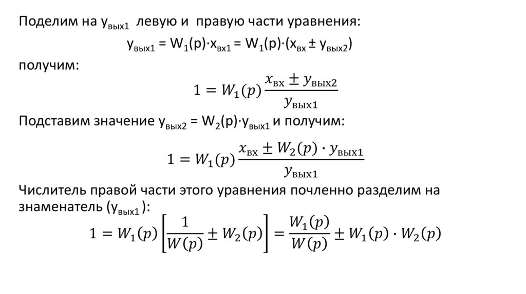 Уравнение звена связывает его входной и выходной параметр. При этом