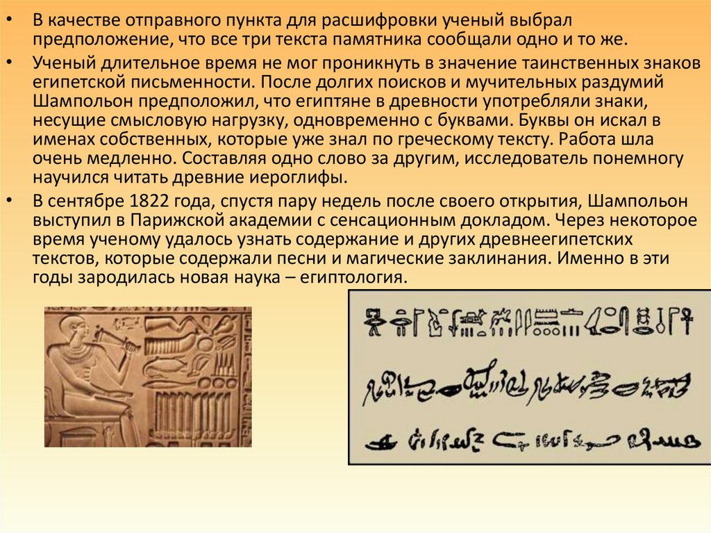 Шампольон предположил, что египтяне в древности употребляли знаки,