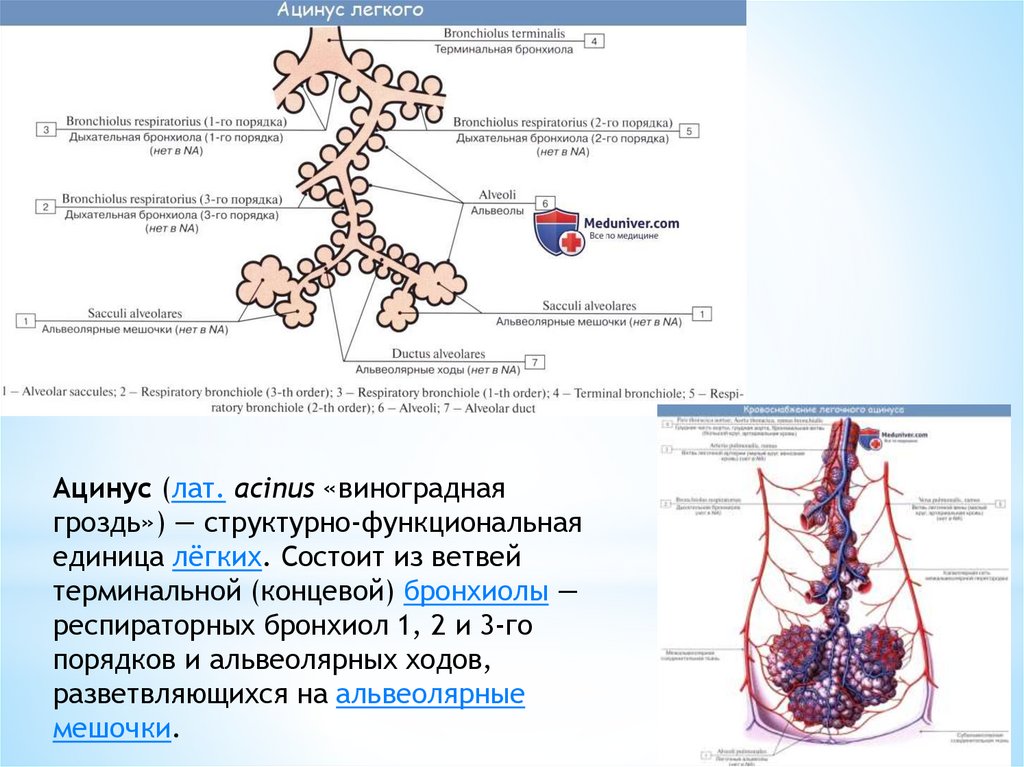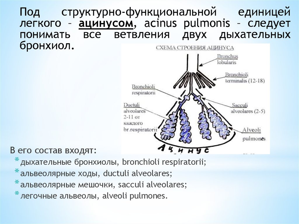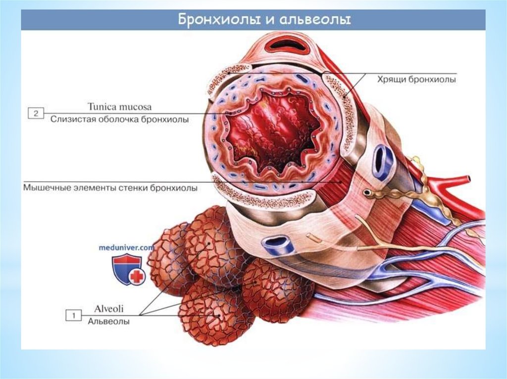 Альвеолы выстланы клетками 2-х типов:Дыхательными (сквамозными) альвеолоцитами – 97,5
