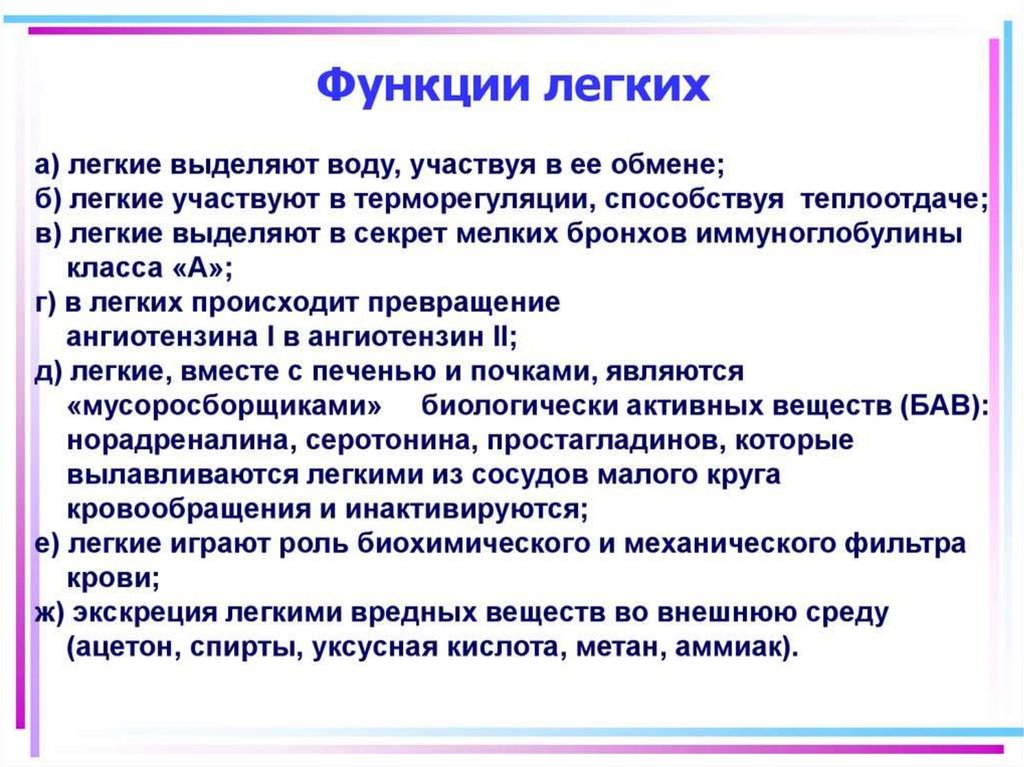 * Дыхательная функция легких заключается в поддержанииотносительно постоянного уровня напряжения О2 и СО2