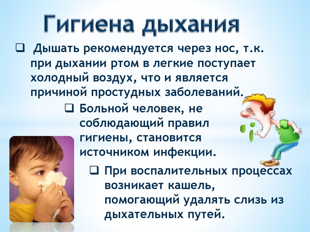 Дышать рекомендуется через нос, т.к.при дыхании ртом в легкие поступает