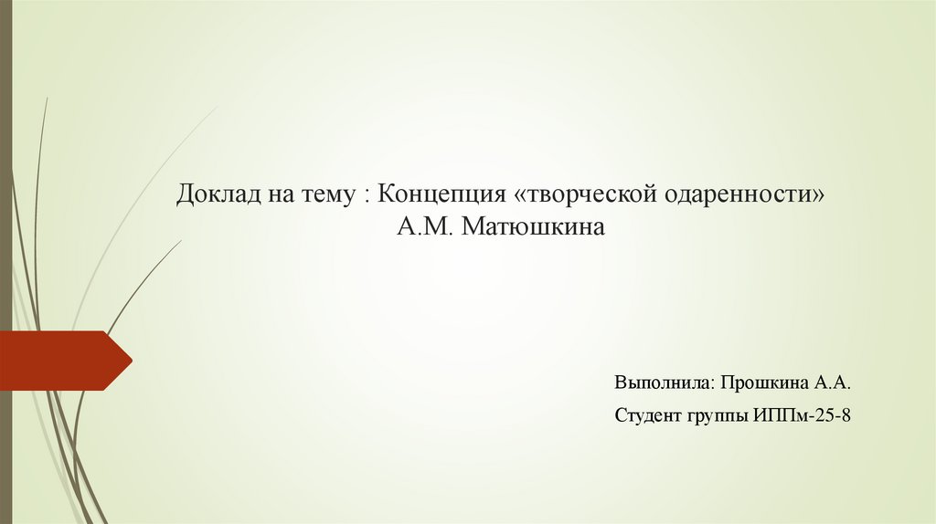 1. Доклад на тему : Концепция «творческой одаренности» А.М. Матюшкина