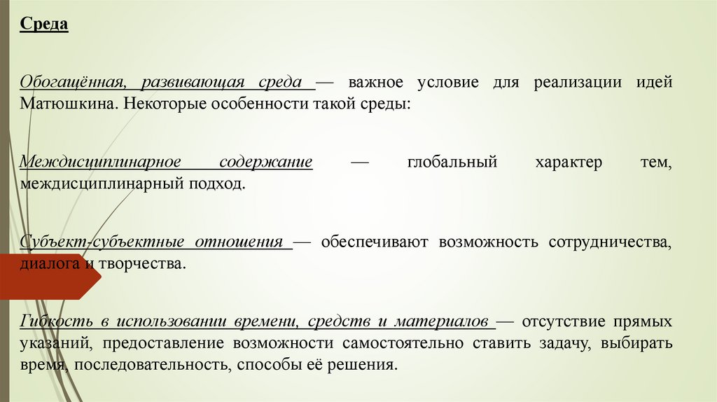 СредаОбогащённая, развивающая среда — важное условие для реализации идей