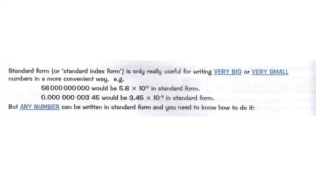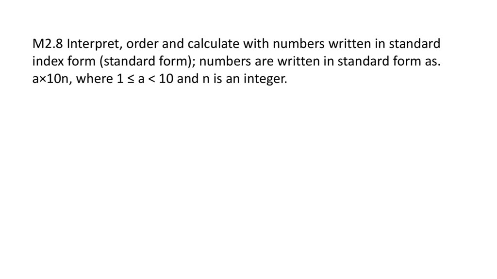 M2.8 Interpret, order and calculate with numbers written in standardindex form (standard form); numbers are written in standard form as.