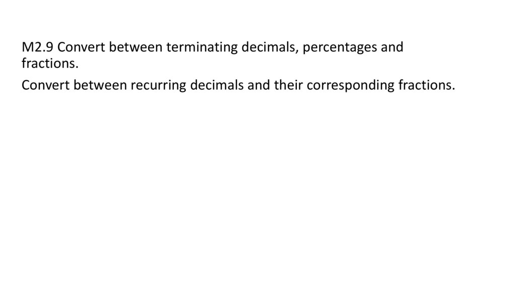 M2.9 Convert between terminating decimals, percentages andfractions.