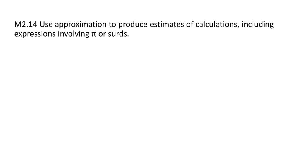 M2.14 Use approximation to produce estimates of calculations, includingexpressions involving π or surds.