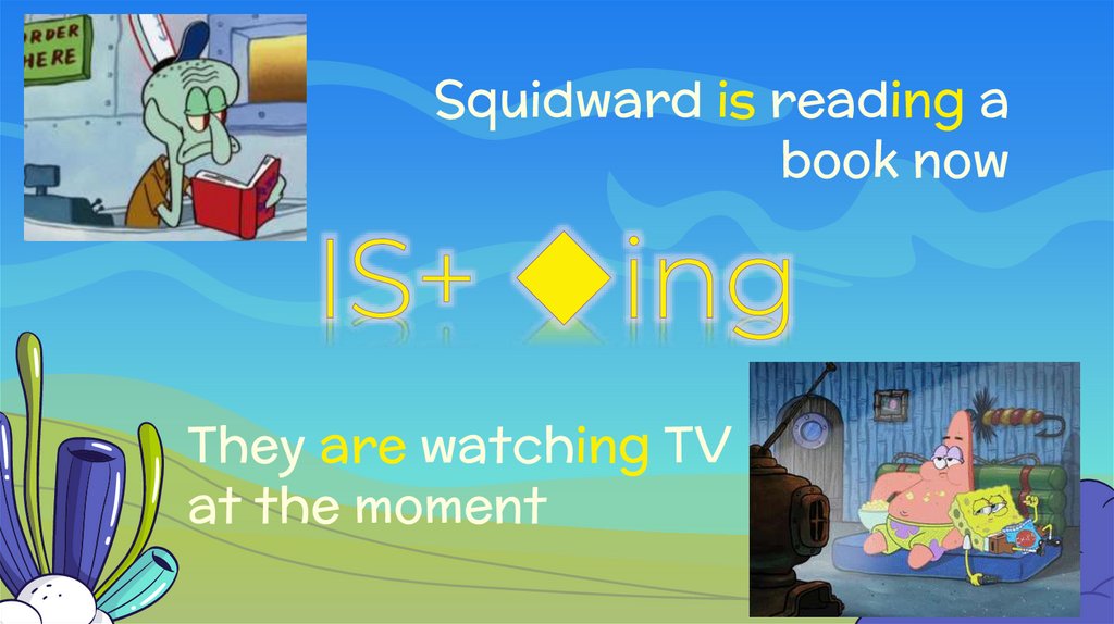 Squidward is reading abook now