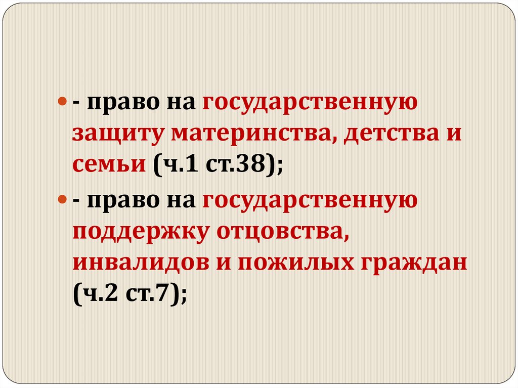 - право на достоинство личности (ст.21) предполагает, что государство создает для человека