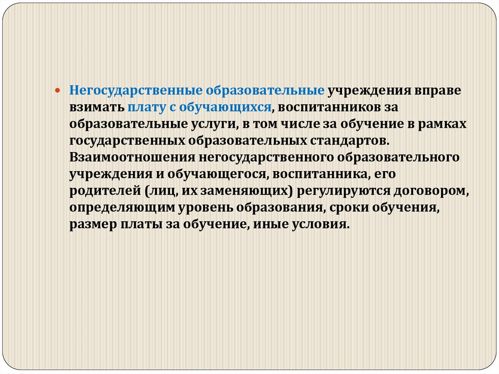 Негосударственные образовательные учреждения вправевзимать плату с обучающихся, воспитанников за