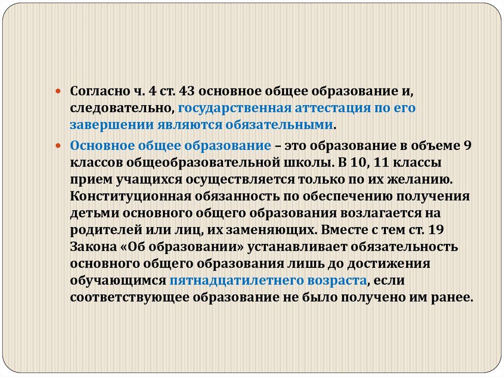 Согласно ч. 4 ст. 43 основное общее образование и,следовательно, государственная аттестация по его