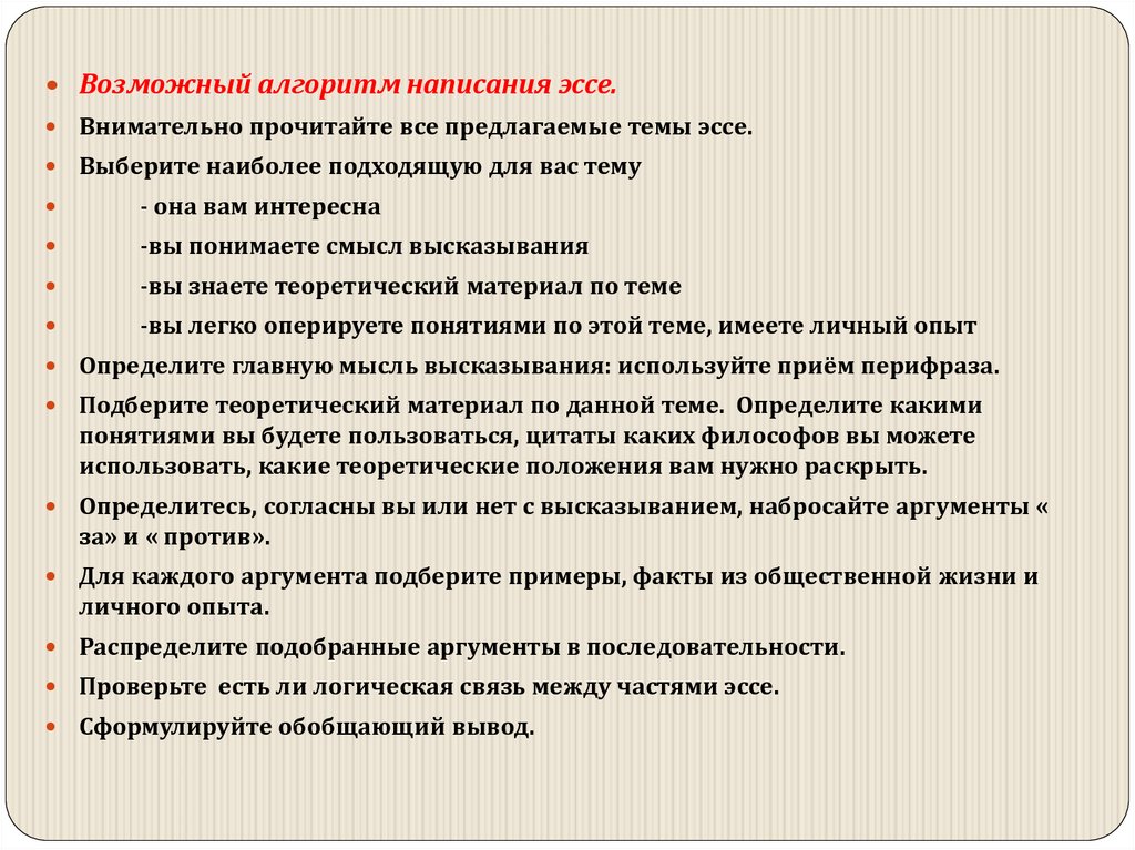 Возможный алгоритм написания эссе.Внимательно прочитайте все предлагаемые темы эссе.
