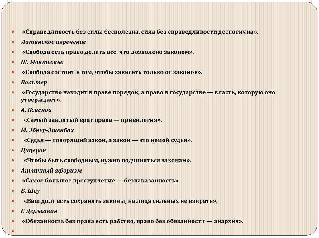 «Справедливость без силы бесполезна, сила без справедливости деспотична».Латинское изречение