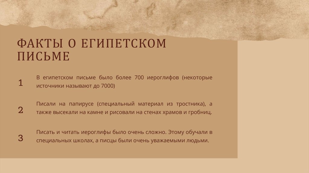 ФАКТЫ О ЕГИПЕТСКОМПИСЬМЕ