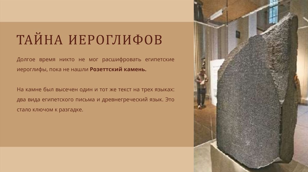 ТАЙНА ИЕРОГЛИФОВДолгое время никто не мог расшифровать египетские