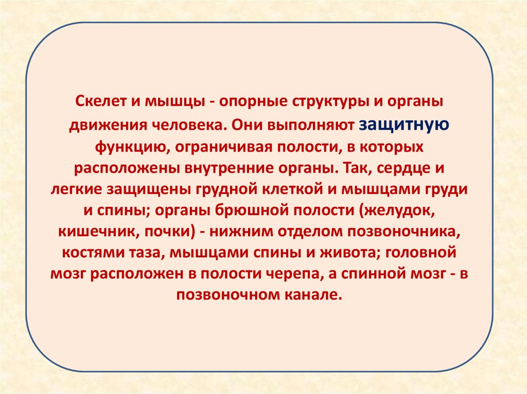 Скелет и мышцы - опорные структуры и органыдвижения человека. Они выполняют защитную
