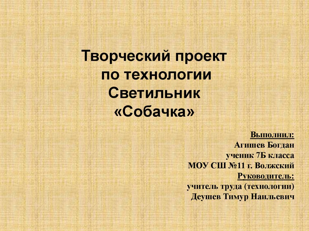 Творческий проектпо технологии