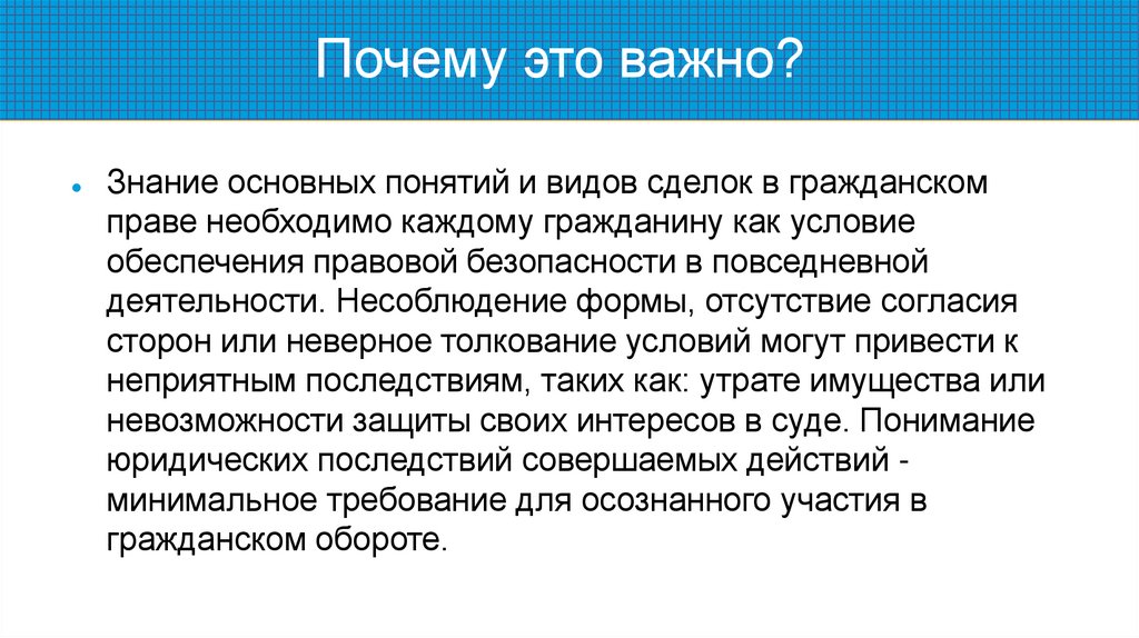 Почему это важно?Знание основных понятий и видов сделок в гражданском
