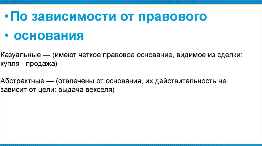 Казуальные — (имеют четкое правовое основание, видимое из сделки: