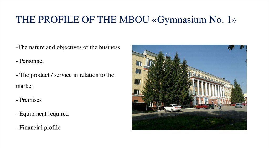 THE PROFILE OF THE MBOU «Gymnasium No. 1»-The nature and objectives of the business