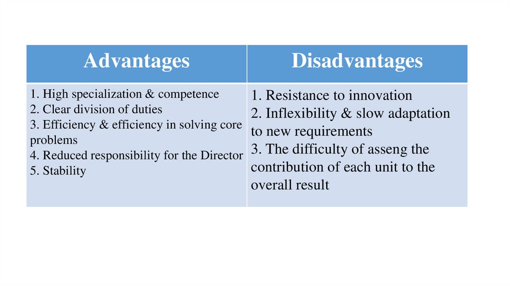 4. Reduced responsibility for the Director 3. The difficulty of asseng the