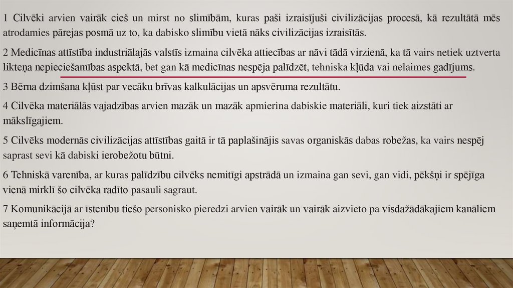 1 Cilvēki arvien vairāk cieš un mirst no slimībām, kuras paši izraisījuši civilizācijas procesā, kā rezultātā mēs