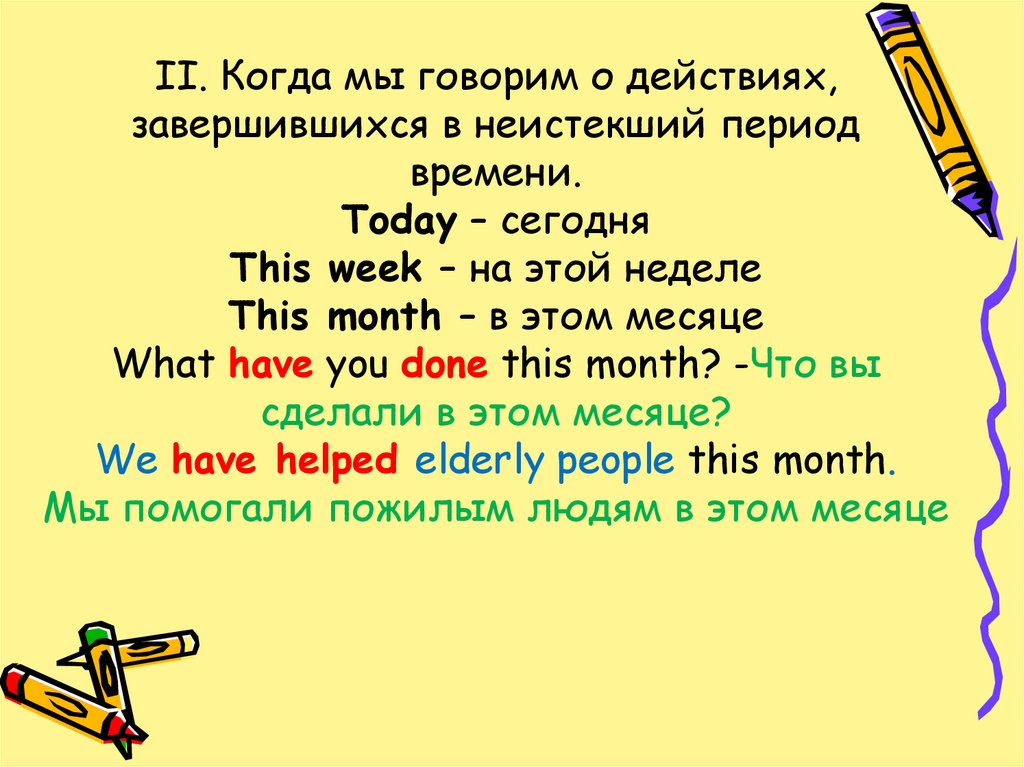 II. Когда мы говорим о действиях,завершившихся в неистекший период