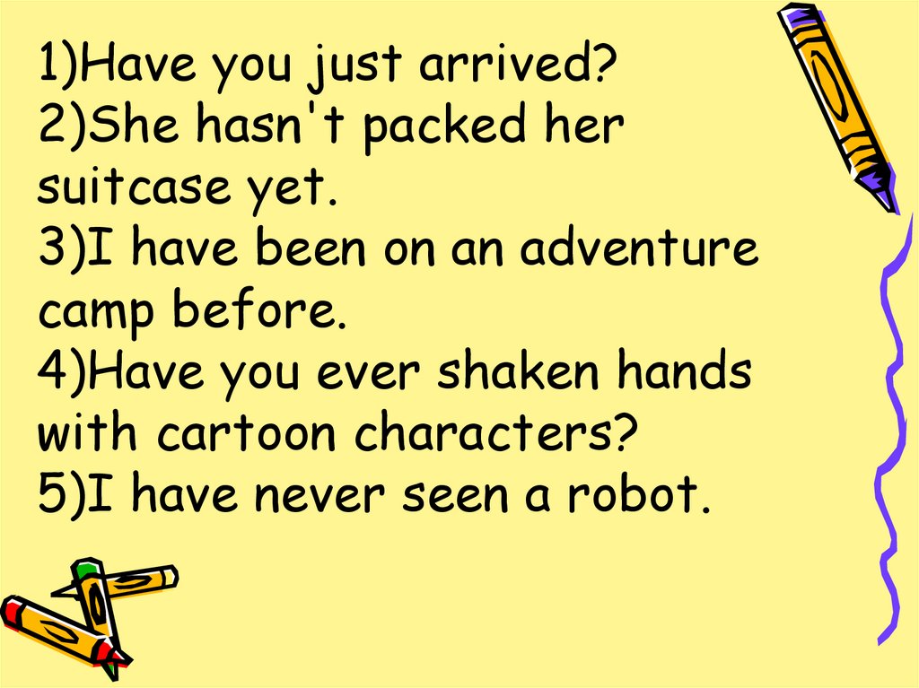 • you/arrived/just/have?• hasn’t/she/yet/packed/suitcase/her.