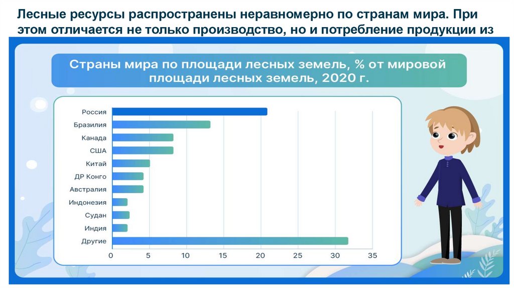 Лесные ресурсы распространены неравномерно по странам мира. Приэтом отличается не только производство, но и потребление продукции из