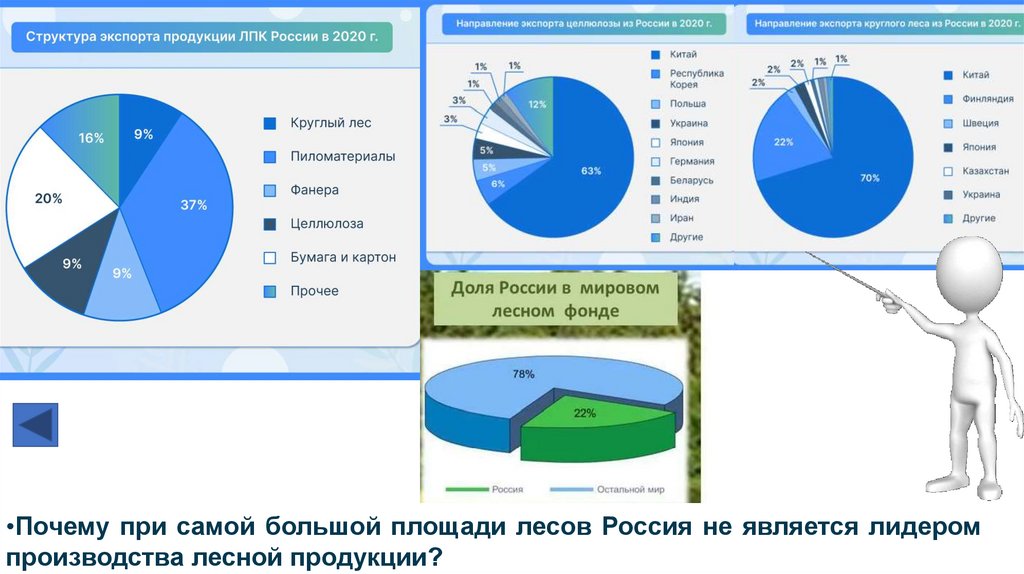 •Почему при самой большой площади лесов Россия не является лидеромпроизводства лесной продукции?
