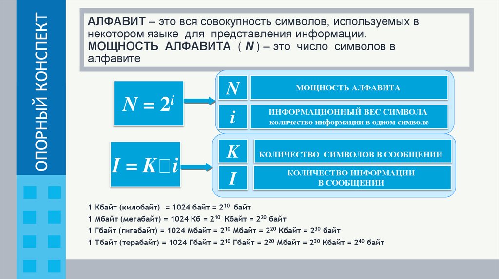 1 Кбайт (килобайт) = 1024 байт = 210 байт