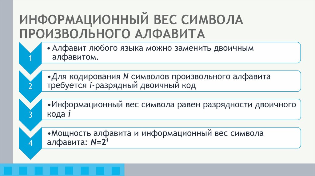 МОЩНОСТЬ АЛФАВИТА ( N ) – это число символов в