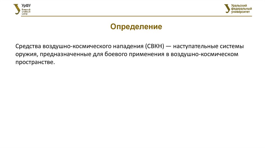 ОпределениеСредства воздушно-космического нападения (СВКН) — наступательные системы