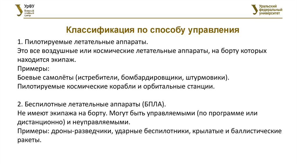 Классификация по способу управления1. Пилотируемые летательные аппараты.
