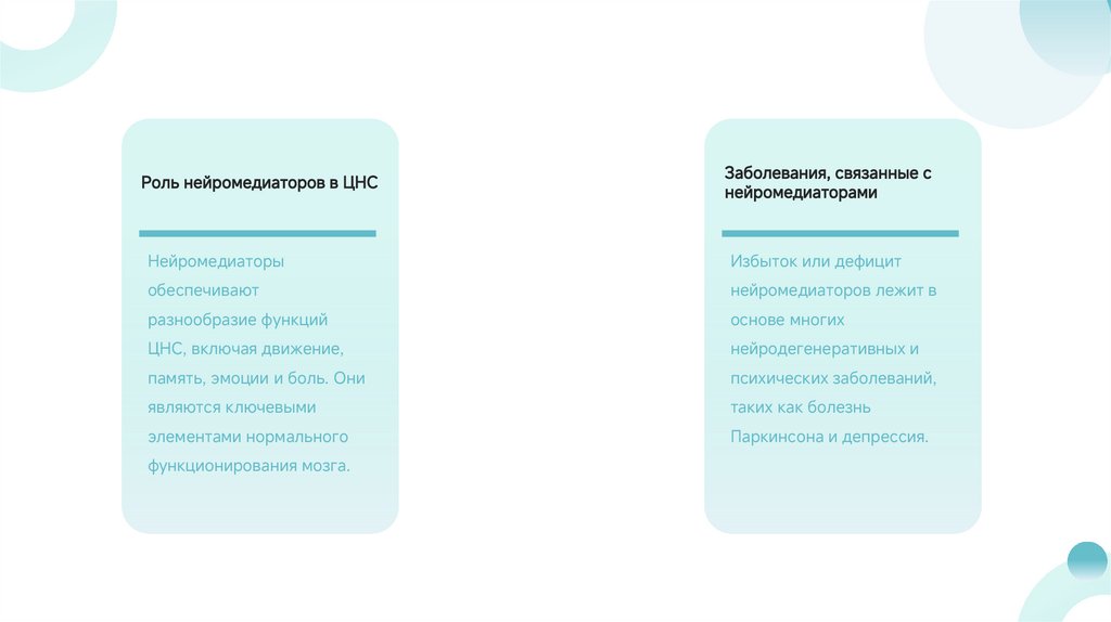 Роль нейромедиаторов в ЦНСЗаболевания, связанные с