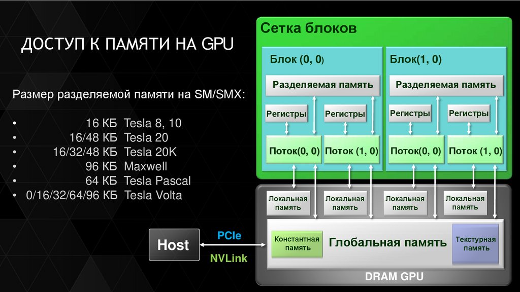 ДОСТУП К ПАМЯТИ НА GPUРазмер разделяемой памяти на SM/SMX: