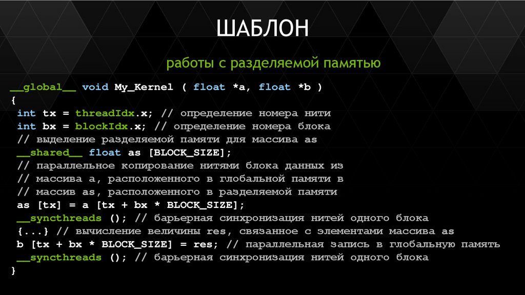 b [tx + bx * BLOCK_SIZE] = res; // параллельная запись в глобальную память
