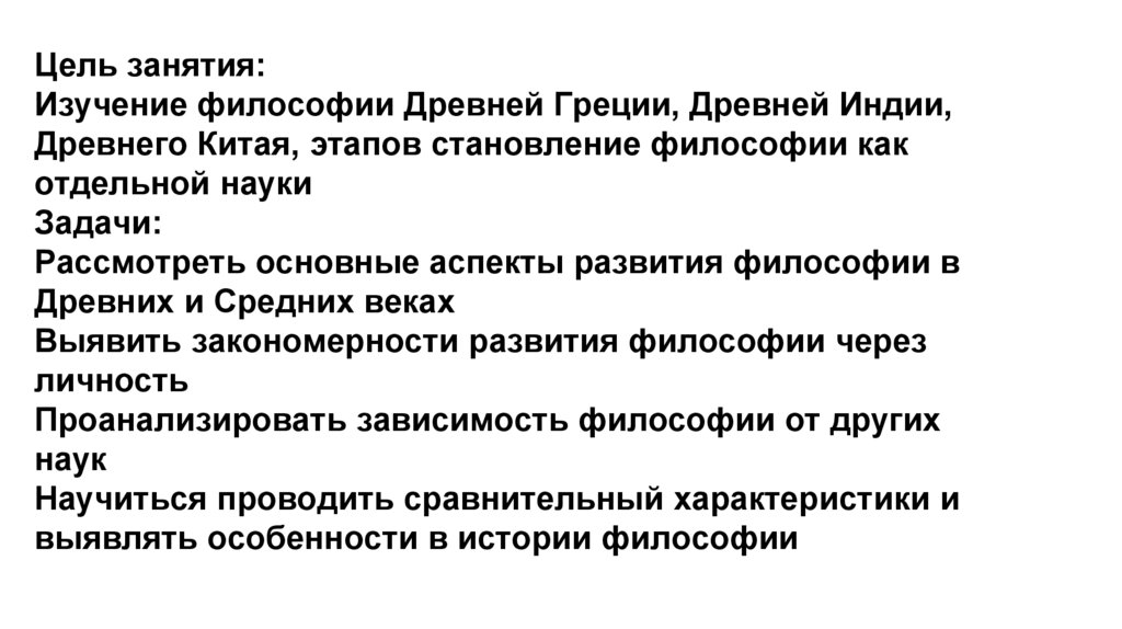 Цель занятия:Изучение философии Древней Греции, Древней Индии,